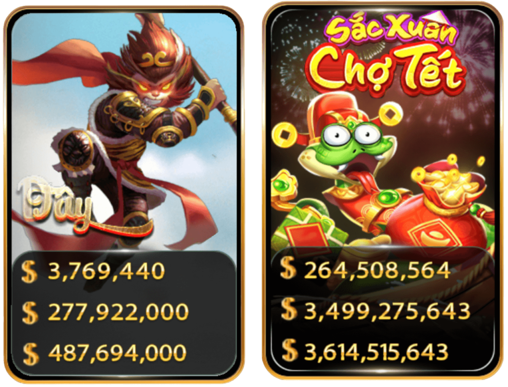 - Sẽ có hàng chục game hấp dẫn hàng đầu thị trường như Linh Châu Ất Tỵ, Hắc Thoại Ngộ Không, Mèo Tài Lộc, Kho Báu Tứ Linh, Tây Du Ký, Sắc Xuân Chợ Tết, Thần Tài, Sơn Tinh Thuỷ Tinh, The Witcher…